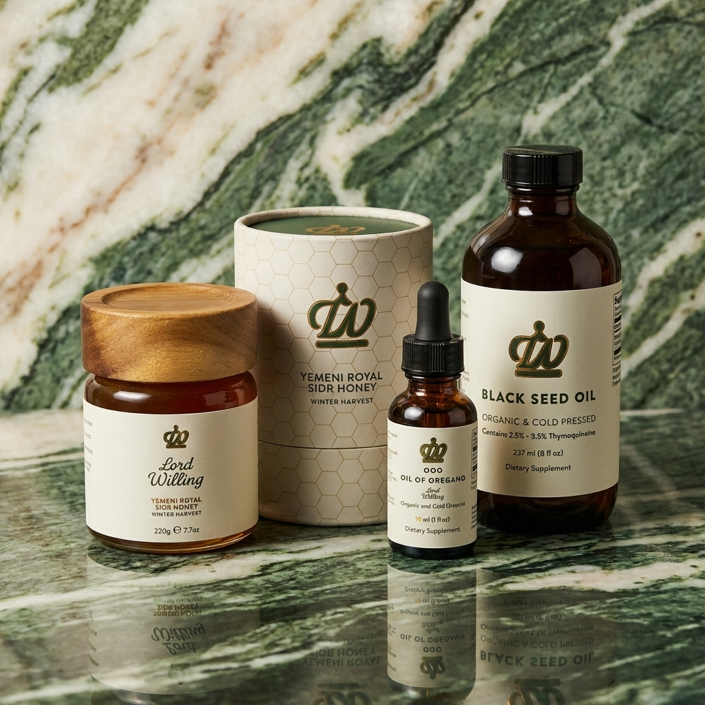 Pure honey and oils from Lord Willing to help you feel stronger every day.
